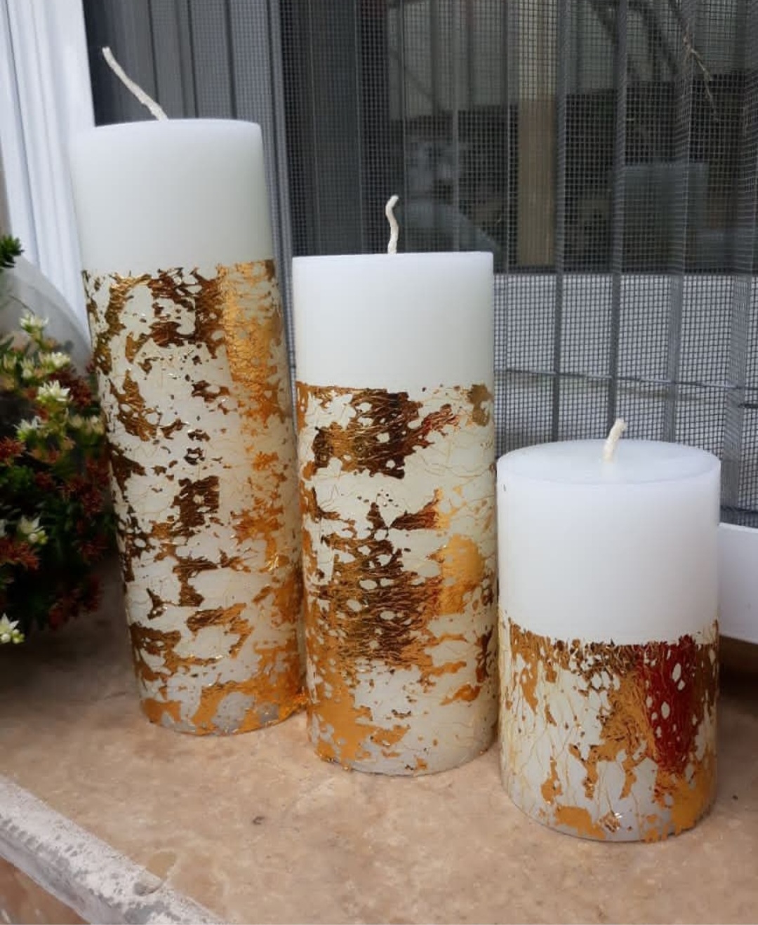 ست شمع سه تایی استوانه طلاییتماس بگیرید